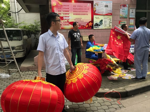 9月27日,為了喜迎十九大,共慶佳節,武漢紅色管家物業服務有限公司福隆服務處推行百步亭三方聯動機制,聯合社區和業委會,在福隆花園開展了清潔家園和歡慶節日的布置活動。此次活動有百步亭物業工作人員、居委會工作人員、業委會成員、社區志愿者等近30人參與。大家一起齊心協力,使整個小區的環境煥然一新。